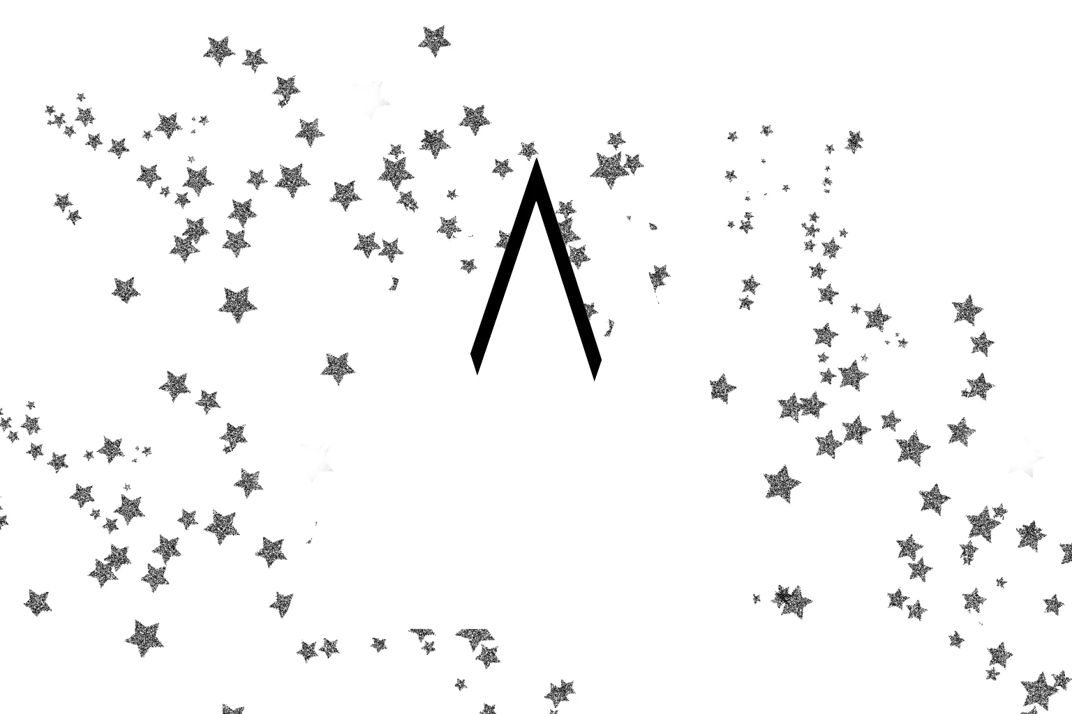 Een witte kaart met glitter sterretjes op de achtergrond en driehoekjes die gekleurd zijn met zwarte folie.
