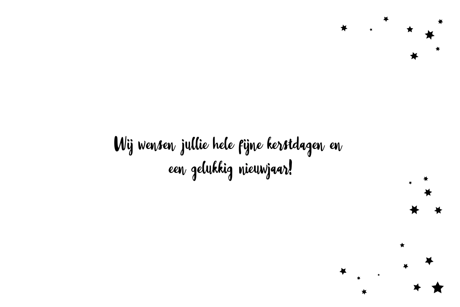 De voorzijde van deze kerstkaart bevat een kerstwens en sterren uitgevoerd in een zwarte folie.