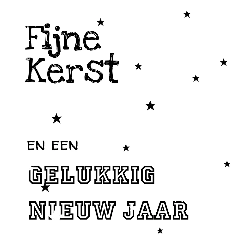 Verschillende typografische stijlen en opmaak met sterren, klinkende glazen en kerstbomen.