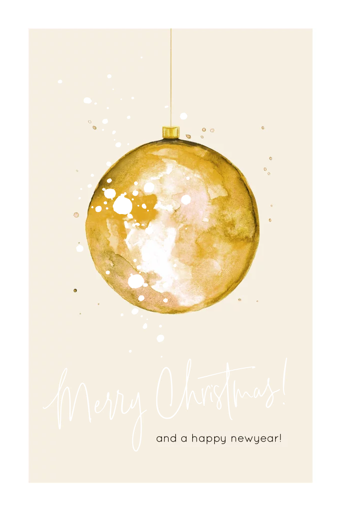 Eem Goudgele watercolour kerstbal, Merry Christmas!