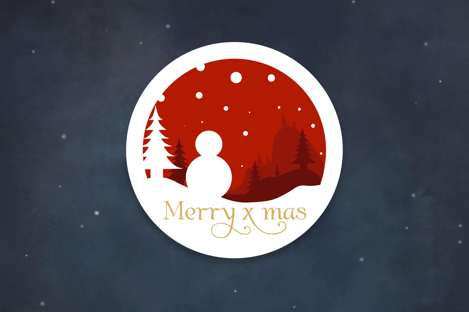 Een dromerige kleur kerstkaart met een typisch sneeuwbol landschap met rode tinten.