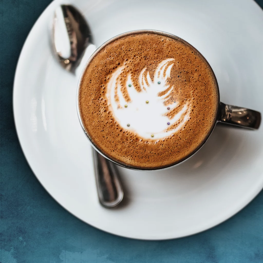 Afbeelding van kopje koffie met Kerstafbeelding in de koffie