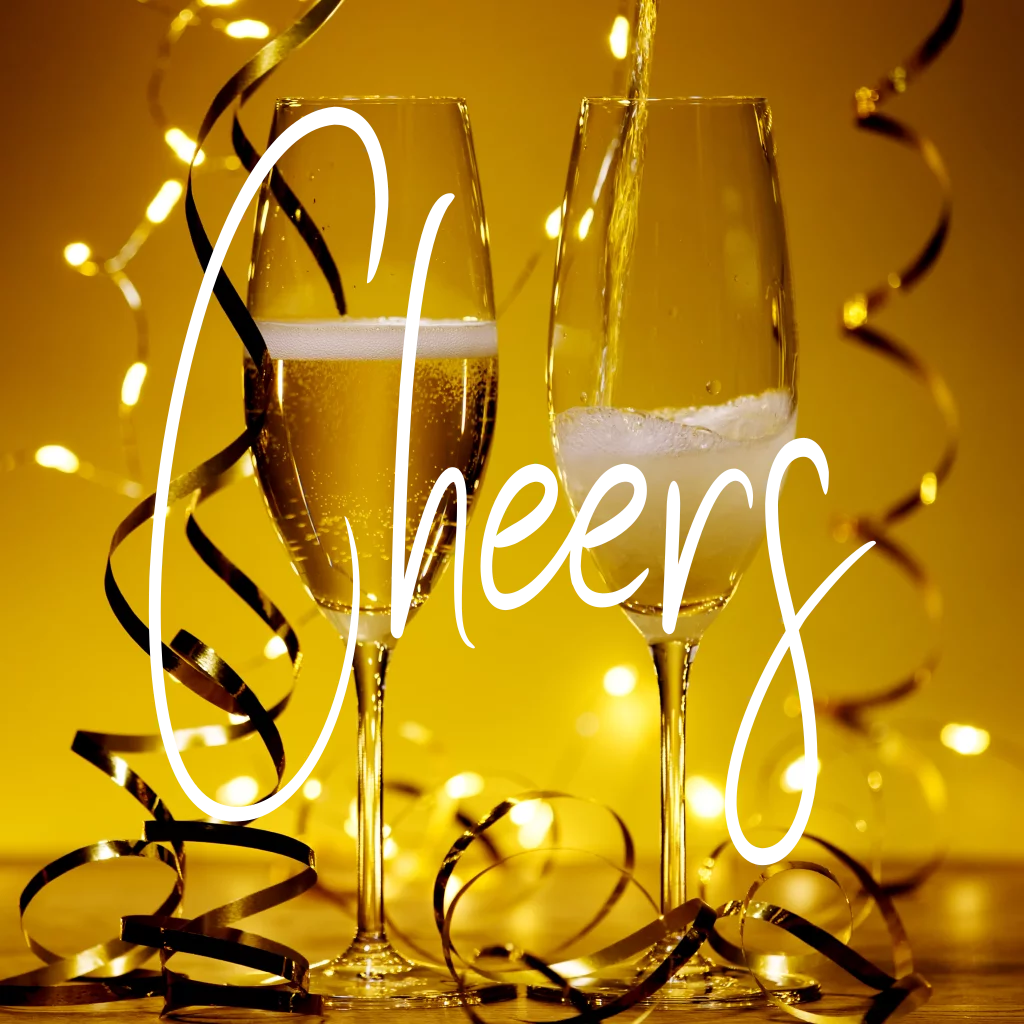 Prachtige kaart met goudfolie tekst op de voorzijde, Cheers, Happy New Year!